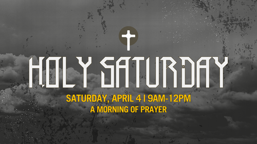 Join us on Holy Saturday for a morning of prayer and listening to God, a meaningful way to mark the close of Lent and prepare our hearts for Easter. We'll have several different forms of prayer available during the morning in the Education building. This is a new endeavor for our community, and we're excited to see what God has in store as we seek God together in this sacred in-between time.